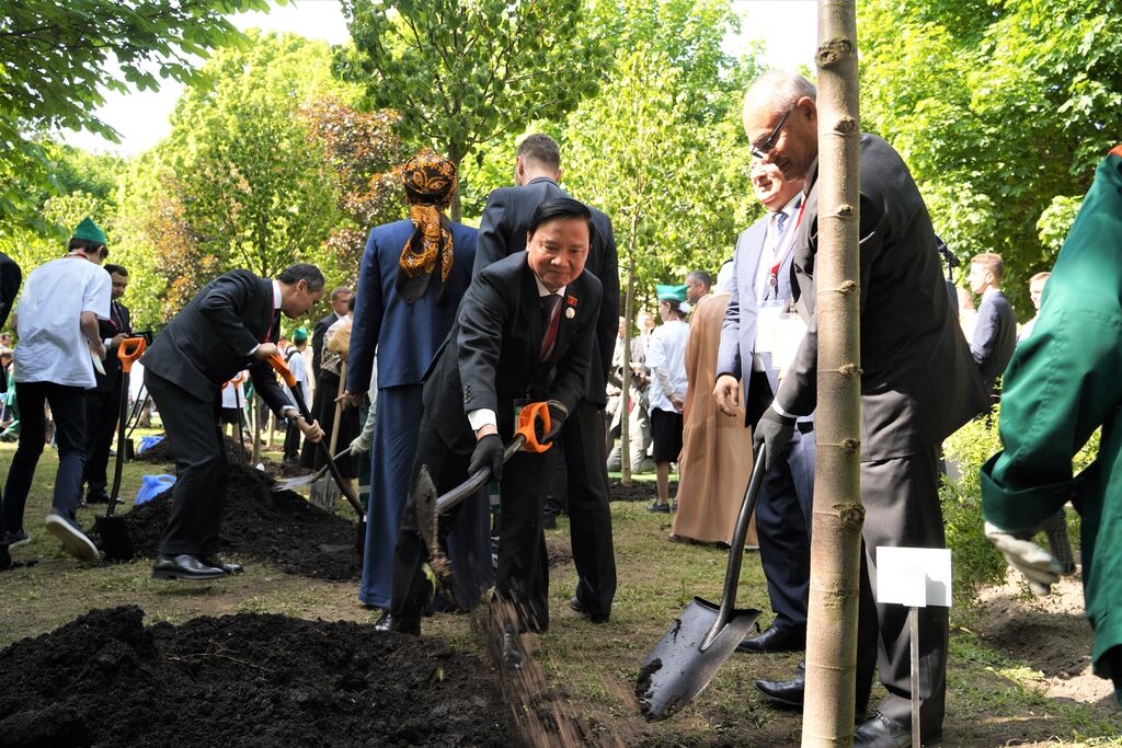 | Le vice-président de l’Assemblée nationale du Vietnam, Nguyên Khac Dinh assiste à la plantation d’arbres dans le jardin de Tauride. |
