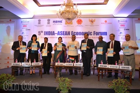 | Des délégués du 5e Forum économique Inde - ASEAN à New Delhi. |