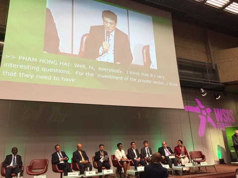 | Le vice-ministre de l’Information et de la Communication, Pham Hông Hai, prend parole lors du Forum du Sommet mondial sur la société de l’information à Genève. |