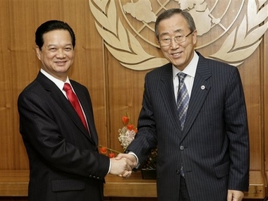 | Le Premier ministre vietnamien Nguyên Tân Dung et le secrétaire général de l'ONU, Ban Ki-moon. |
