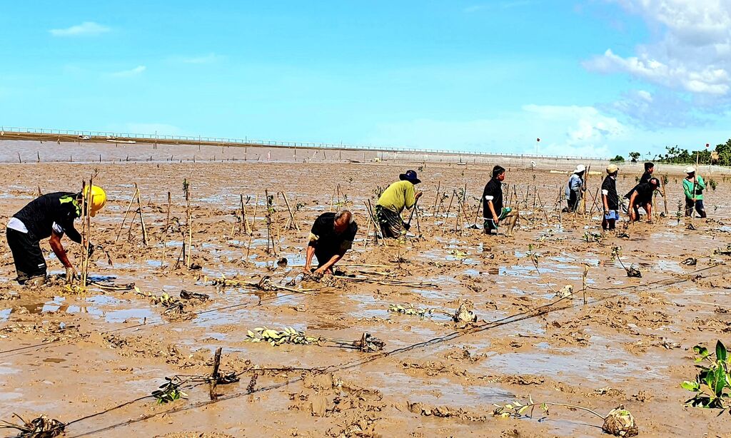 | Planter des arbres à Soc Trang (Sud) pour faire face aux changements climatiques. |