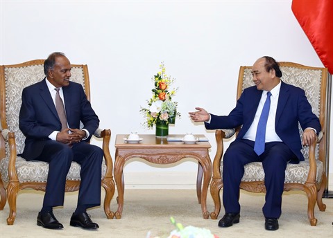 | Le Premier ministre Nguyên Xuân Phuc (droite) et le ministre singapourien de l’Intérieur, K Shanmugam, le 6 décembre à Hanoï. |