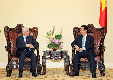 | Le Premier ministre Nguyên Tân Dung (droite) et le ministre algérien de la Justice, Tayeb Louh, le 10 juin à Hanoi. |
