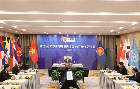 | Le Premier ministre Nguyên Xuân Phuc s'exprime lors de l'ouverture du Sommet spécial par visioconférence de l'ASEAN+3, le 14 avril. |