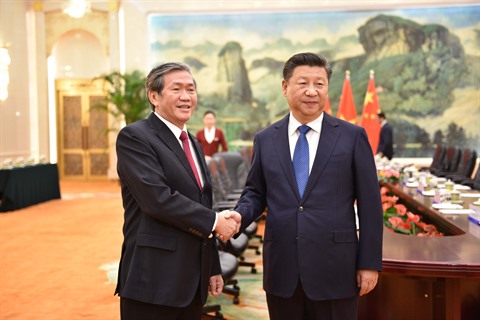 | Dinh Thê Huynh (gauche) et le secrétaire général du Parti communiste chinois (PCC) et président de la Chine Xi Jinping, le 20 octobre à Pékin. |