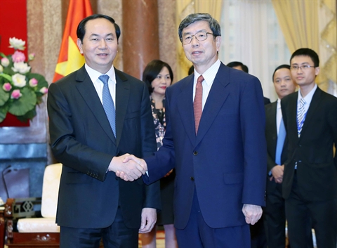 | Le président vietnamien Trân Dai Quang (gauche) et le président de la BAD, Takehiko Nakao, le 17 juin à Hanoi. |