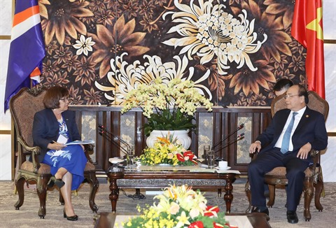 | Le Premier ministre Nguyên Xuân Phuc et la présidente de Marshall, Hilda Heine, le 27 juin à Dà Nang. |