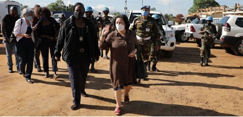 | La représentante spéciale du secrétaire général de la République démocratique du Congo, Leila Zerrougui, visitant Beni, dans la province du Nord-Kivu, en novembre 2020. |