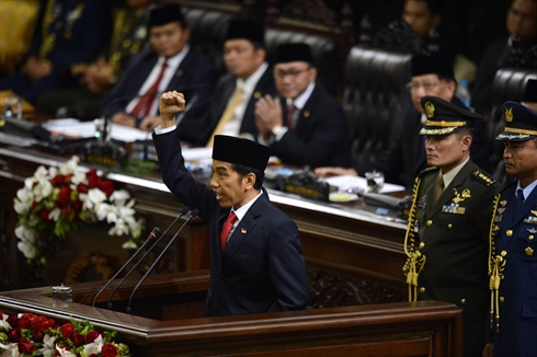 | Cérémonie d'investiture du nouveau président indonésien Joko Widodo, le 20 octobre à Jakarta. |