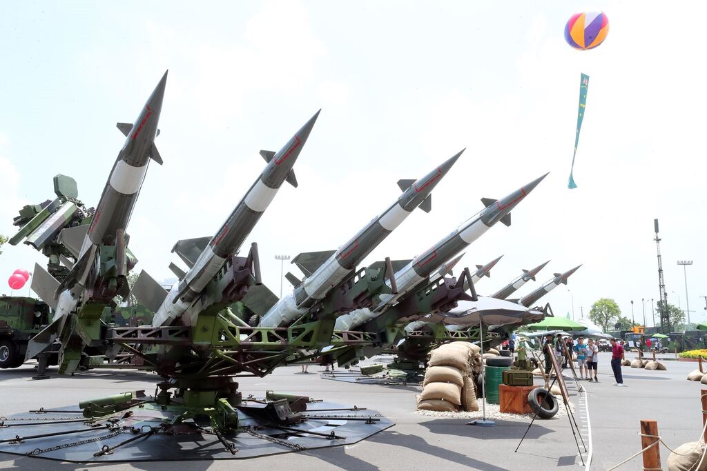 | Une exposition en plein air présente des missiles et des équipements militaires développés et modernisés par les groupes industriels de défense vietnamiens. |