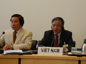 | Le vice-ministre du Travail, des Invalides de guerre et des Affaires sociales, Doan Mâu Diêp (droite) à la 60e session du Comité des droits de l'enfant de l'ONU. |