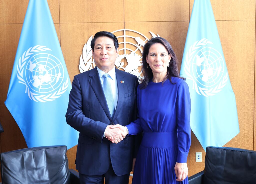 | Le président vietnamien Luong Cuong et la présidente de la 80ᵉ session de l’Assemblée générale de l’ONU, Annalena Baerbock, le 24 septembre à midi (heure locale), au siège des Nations unies à New York. |