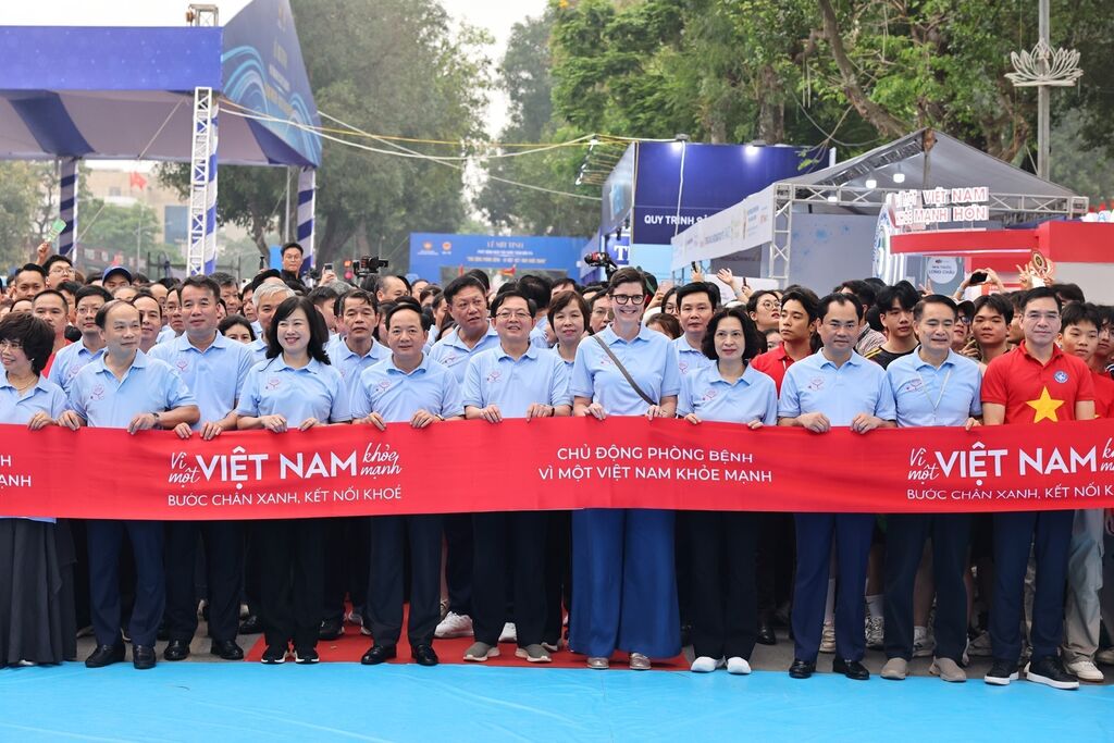| Des délégués participent à la marche "Pour un Vietnam en bonne santé". |