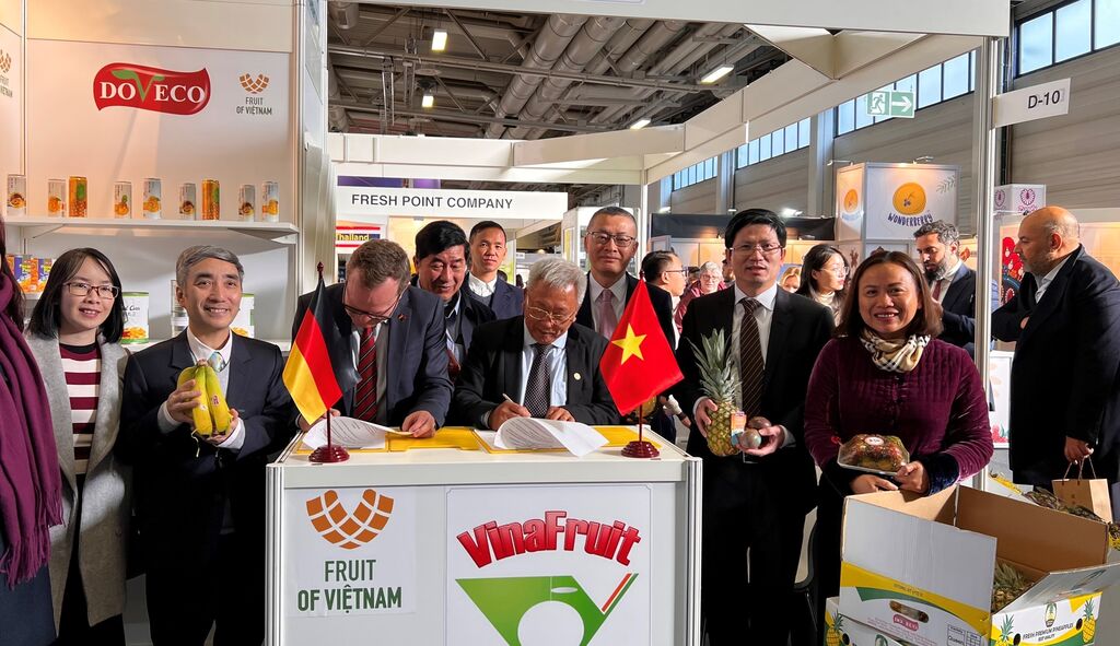 | Signature du protocole d’accord entre Vinafruit et la compagnie Skaro, représentante de l’Association allemande des PME, dans le cadre de Fruit Logistica 2023 en Allemagne. |