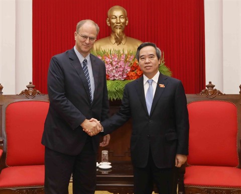 Nguyên Van Binh, président de la Commission centrale de l’économie du Parti communiste du Vietnam (PCV), a eu une rencontre avec l'ambassadeur allemand au Vietnam, Christian Berger, à Hanoï le 1er novembre.