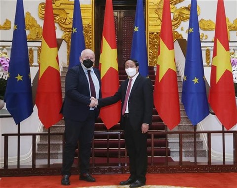 À cette occasion, il a exhorté l’UE à soutenir le Vietnam dans la mise en œuvre de ses engagements à la COP26, l’établissement d’un marché intérieur du carbone, à coopérer pour mettre en œuvre des projets dans la transition énergétique, le transport vert, la conservation et le reboisement des forêts pour s'adapter au changement climatique…