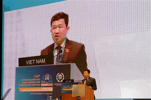 Le chef de la délégation de l'Assemblée nationale (AN) du Vietnam à l'UIP-144, Vu Hai Hà, a déclaré que tout d'abord, les parlements des pays devraient appeler les gouvernements à déployer des politiques d'adaptation au changement climatique de manière plus robuste et efficace selon l'Accord de Paris et à construire une feuille de route pour la réalisation des objectifs net zéro engagés lors de la 26e Conférence des Nations unies sur les changements climatiques (COP26) ainsi qu'une supervision renforcée de la mise en œuvre des objectifs de développement durable, en particulier l'objectif 13 des actions climatiques.