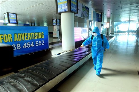 | Désinfection à l'aéroport international de Cat Bi, à Hai Phong (Nord), le 11 août. |