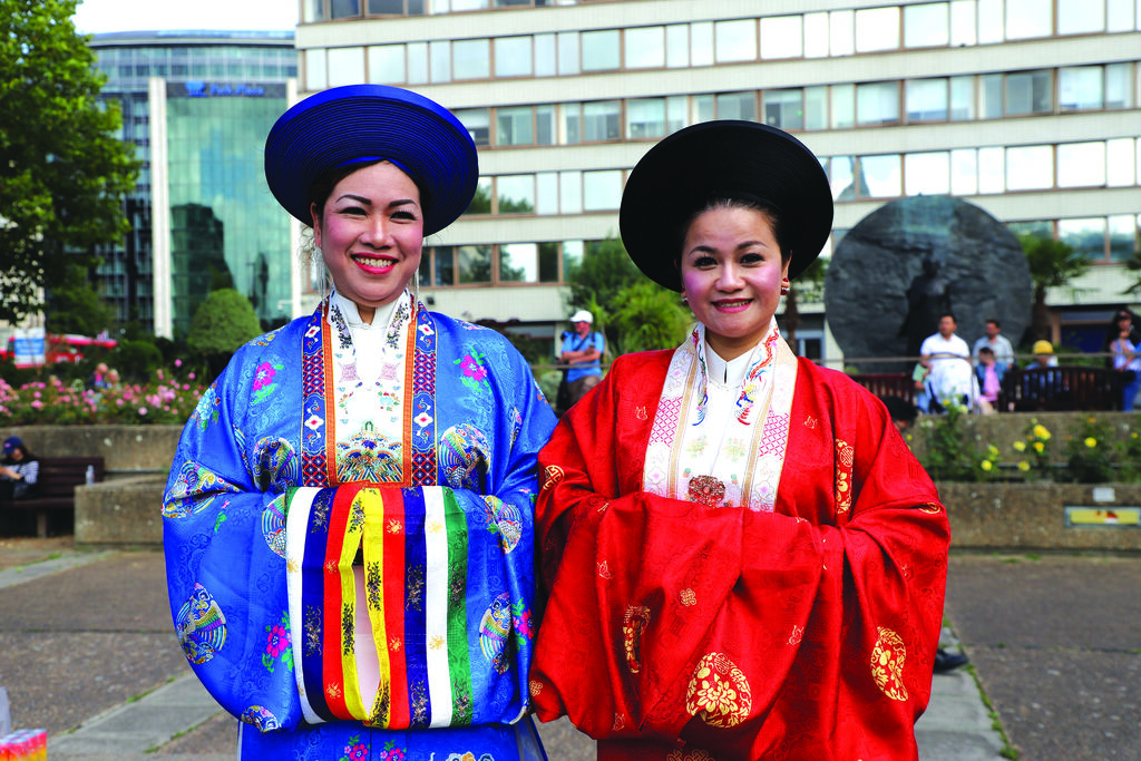 En Slovaquie, Viêt phuc bô hành s’est tenu le 24 août au château de Bratislava, capitale slovaque. Les áo dài (tunique fendue traditionnelle des Viet-namiens) gracieux se mêlaient aux costumes traditionnels des ethnies Tày, Thaï, H’mông et aux tenues de quan ho (chants alternés) aux couleurs éclatantes. Chaque pas, chaque sourire, chaque salut racontait une histoire de la culture vietnamienne : à la fois douce, fière, proche et solennelle. Le spectacle de danse du lion, particulièrement animé, a également été un point fort qui a attiré l’attention des amis internationaux.