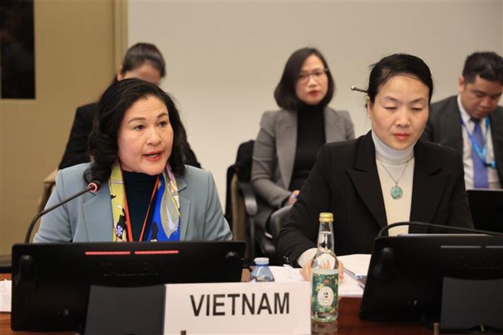| La vice-ministre des Affaires intérieures Nguyên Thi Hà (gauche) s'exprime à l'événement à Genève (Suisse), le 3 février. |