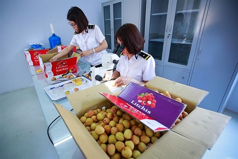 | Contrôle de la qualité des litchis pour l'exportation. |