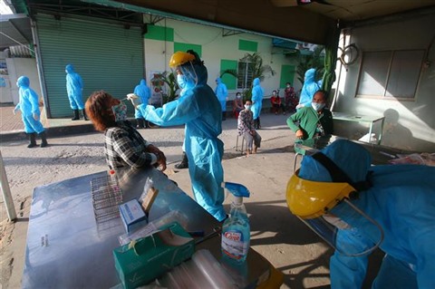 | Prélèvement d'un échantillon nasopharyngé pour faire le test du COVID-19 à Hâu Giang (delta du Mékong). |