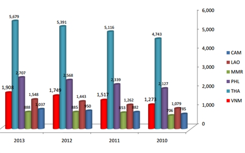 | Le Vietnam est sur la liste des pays de revenu intermédiaire avec un PIB per capita moyen qui augmente progressivement chaque année de 9,1% en 2013, concrètement 1.908 dollars. |