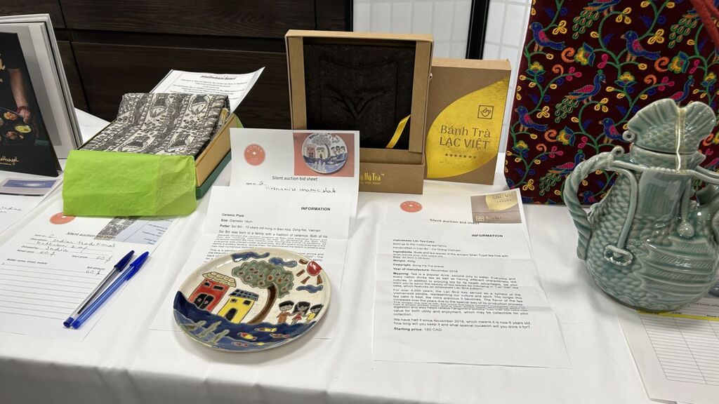 La conseillère commerciale de l'ambassade du Vietnam au Canada, Trân Thu Quynh, a déclaré que l'Office du commerce du Vietnam avait soutenu les entreprises et apporté ses produits pour collecter des fonds. Les produits présentés sont les plus typiques du Vietnam comme le thé, le café et surtout les produits céramiques.