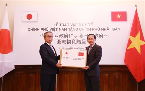 Le cadeau, nouveau lot de fournitures médicales, a été fait conformément à un accord entre le Premier ministre vietnamien Nguyên Xuân Phuc et son homologue japonais Abe Shinzo lors de leur entretien téléphonique du 4 mai.