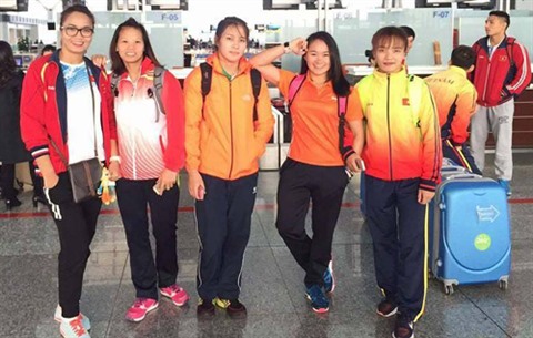 | Les membres de l'équipe vietnamienne aux Championnats d'Asie de lutte, à New Delhi, en Inde |