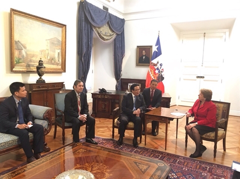 Au Chili, les 27 et 28 juin, Hoàng Binh Quân a été reçu par la présidente chilienne Michelle Bachelet qui a souhaité étendre davantage la coopération économique, au commerce et dans l’investissement, et mettre en œuvre efficacement l’accord de libre-échange signé par les deux pays. Elle a accepté l’invitation d'effectuer une visite au Vietnam l’année prochaine, à l’occasion de sa participation au sommet de l’Asie-Pacifique (APEC) 2017.