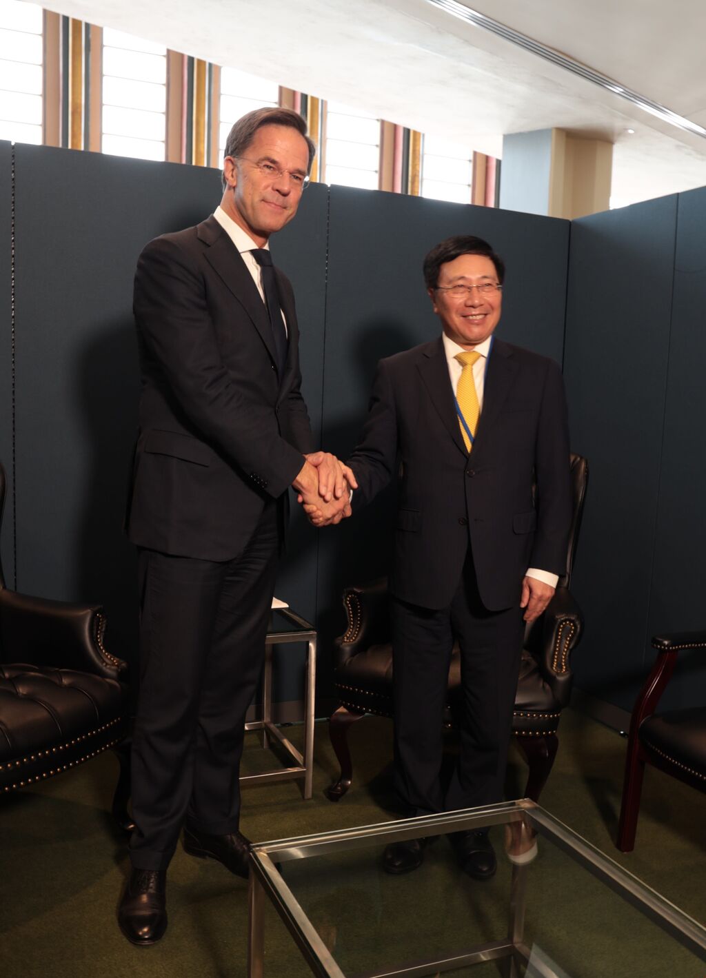 | Le vice-Premier ministre permanent vietnamien Pham Binh Minh (droite) et le Premier ministre néerlandais Mark Rutte. |