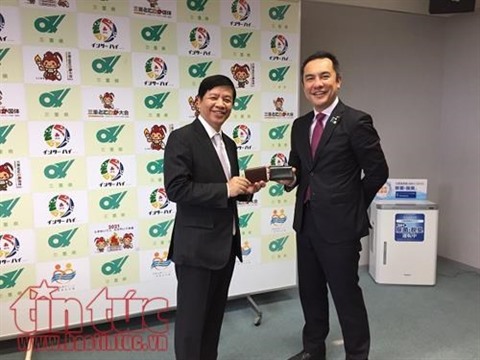 | L'ambassadeur du Vietnam au Japon, Nguyên Quôc Cuong (gauche), et le gouverneur de la préfecture de Mie, Eikei Suzuki. |