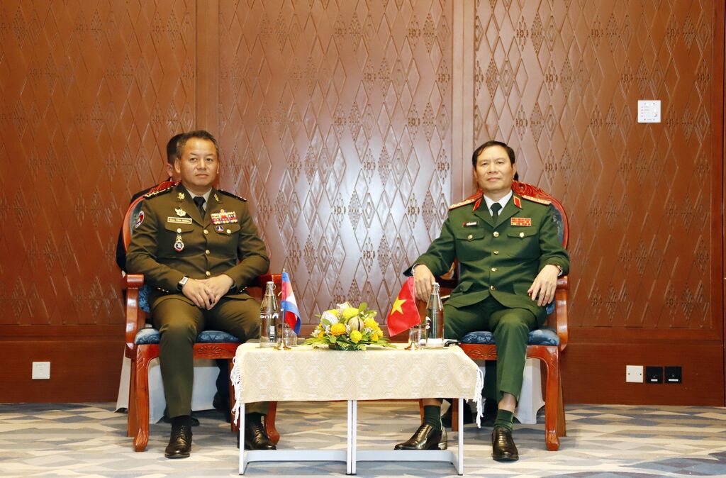 | Rencontre du chef d’état-major général de l’Armée populaire du Vietnam, vice-ministre de la Défense, Nguyên Tân Cuong (droite), et le vice-Premier ministre cambodgien et ministre de la Défense, Tea Siha. |