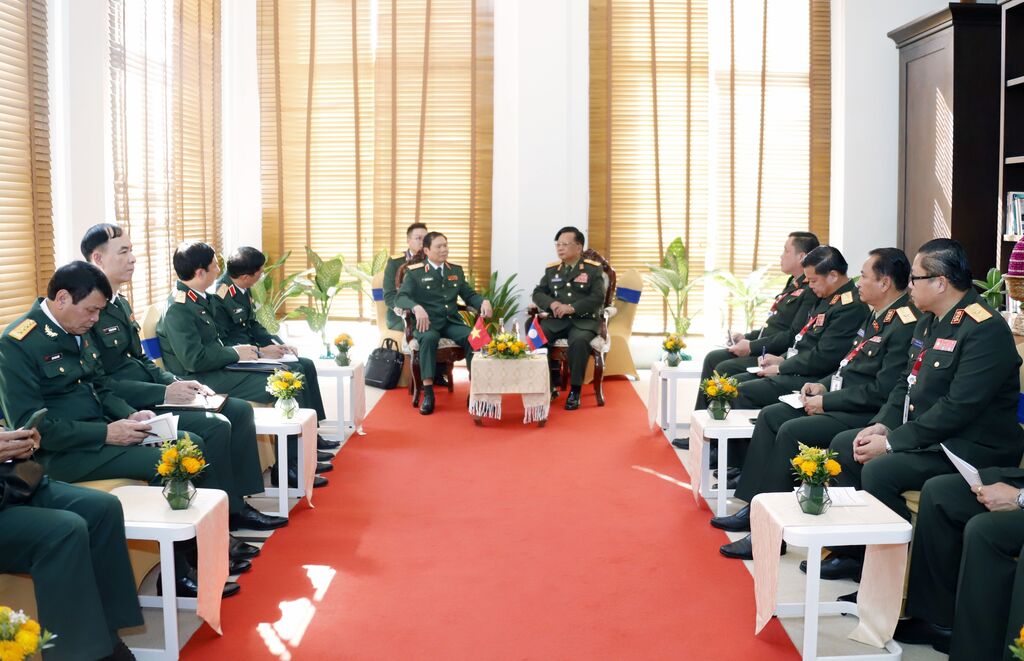| Rencontre du chef d’état-major général de l’Armée populaire du Vietnam, vice-ministre de la Défense, Nguyên Tân Cuong, et le vice-Premier ministre lao et ministre de la Défense, Chansamone Chanyalath. |