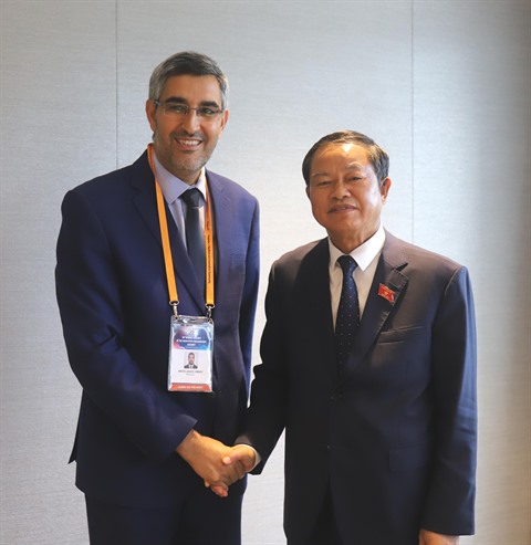| Le vice-président de l'AN vietnamienne Dô Ba Ty (droite) et le vice-président de la Chambre des représentants marocaine, Abdelaziz Omarihai. |