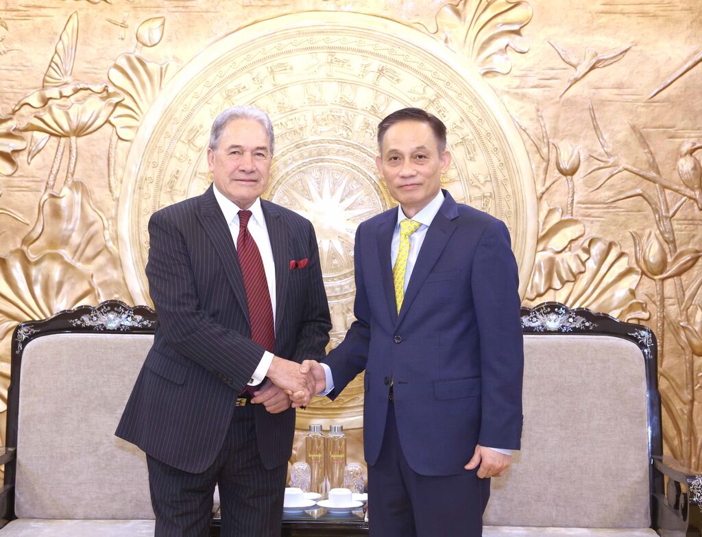 | Le chef de la Commission centrale des relations extérieures du Parti, Lê Hoài Trung (droite), et le vice-Premier ministre néo-zélandais et ministre des Affaires étrangères, Winston Peters. |