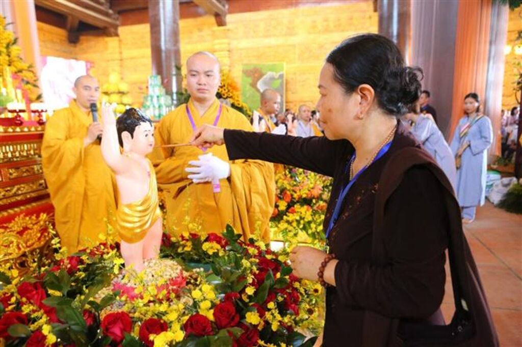| Rituel traditionnel du bain de Bouddha à la pagode de Tam Chuc, province de Hà Nam (Nord). |