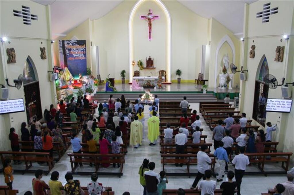 | Les gens prient dans une église à la ville de Vi Thanh, province de Hâu Giang (Sud). |