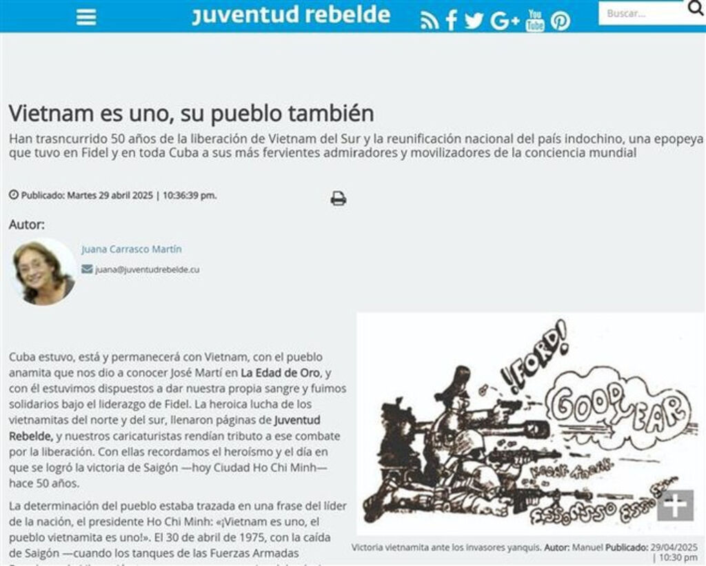 Dans son article “Le Vietnam est un, son peuple aussi », Juventud Rebelde réaffirme : “Cuba était, est et restera avec le Vietnam”.