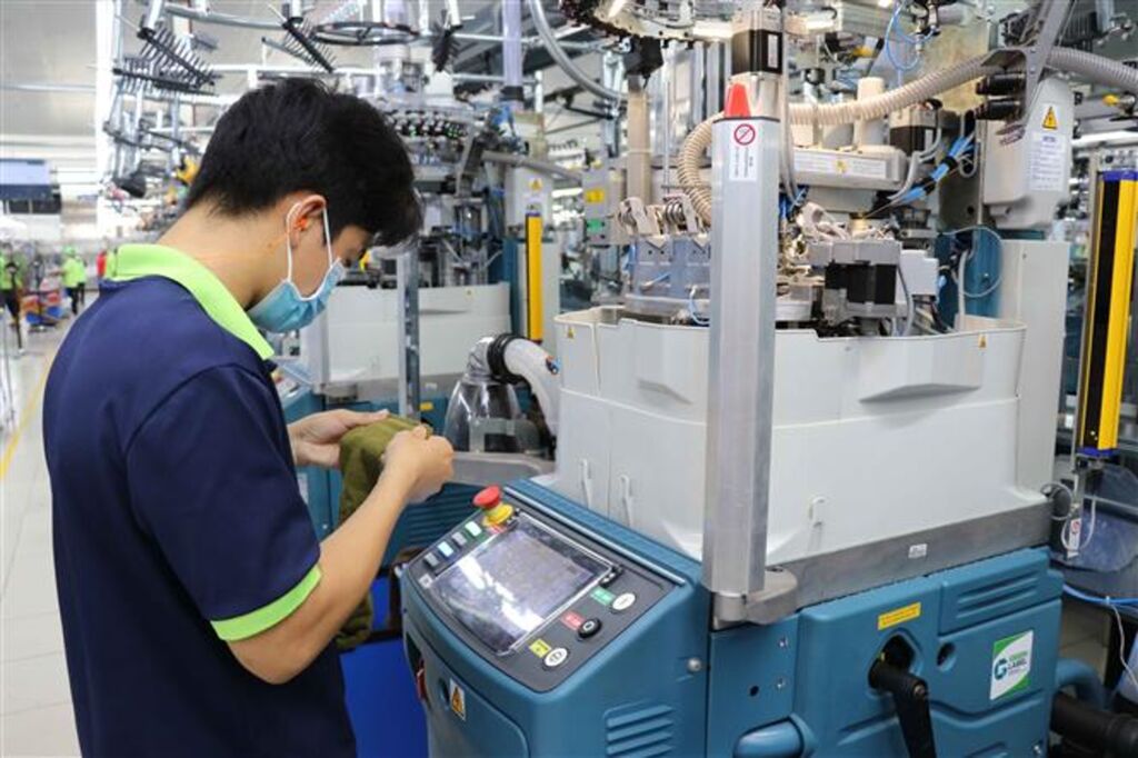 | Chaîne de production de chaussettes d'une entreprise sud-coréenne à Long An (delta du Mékong). |