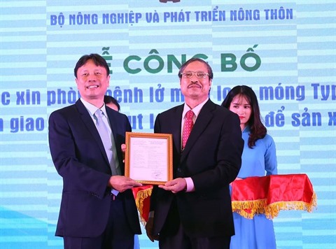 | Cérémonie pour annoncer la production du vaccin contre la fièvre aphteuse le 17 novembre à Hanoï. |