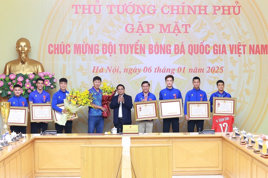 Le 6 janvier à Hanoï, le chef du gouvernement a rencontré et félicité le Onze national pour sa victoire à la Coupe de l’ASEAN Mitsubishi Electric 2024. Rappelant son parcours chargé d’émotions jusqu’au championnat, Pham Minh Chinh a attribué ce résultat aux efforts de toute l’équipe, au processus de formation du secteur sportif et, surtout, au soutien de plus de 100 millions de Vietnamiens en toutes circonstances. Il a également demandé à l’équipe de ne pas se reposer sur ses lauriers mais de poursuivre ses efforts pour obtenir plus de victoires et atteindre des objectifs plus élevés, y compris lors des tournois asiatiques et de la Coupe du monde.