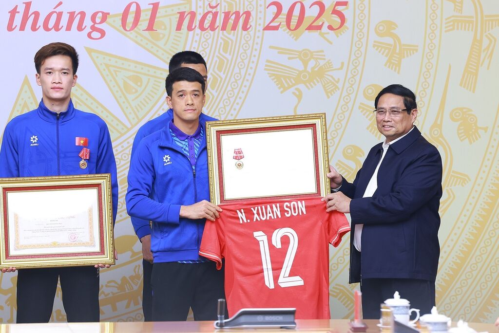 Le Premier ministre Pham Minh Chinh a remis l’Ordre du Travail de première classe au Onze national et l’Ordre du Travail de troisième classe à six joueurs aux performances exceptionnelles, à savoir Nguyên Xuân Son, Dô Duy Manh, Nguyên Quang Hai, Nguyên Tiên Linh, Nguyên Hoàng Duc et Nguyên Dinh Triêu. Il a également décerné des satisfecit du Premier ministre aux 29 membres de l’équipe.