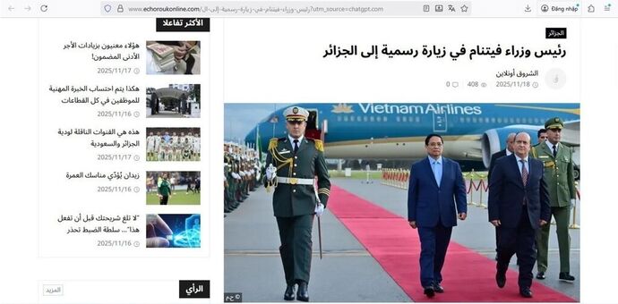 >> La visite officielle du Premier ministre Pham Minh Chinh à la Une de la presse algérienne