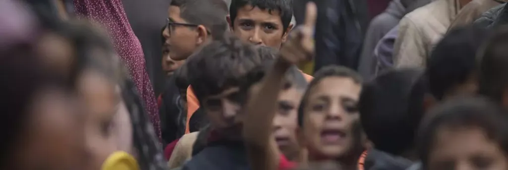 | Des enfants palestiniens font la queue à une distribution de nourriture à Deir al-Balah, bande de Gaza, le 28 novembre. |