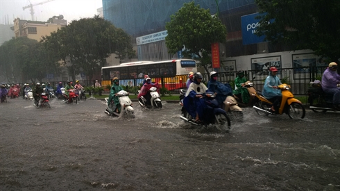 | Les pluies torrentielles ont inondé de nombreuses rues de Hanoi dans la matinée du 17 juillet. Photo : Trong Dat/VNA/CVN |
