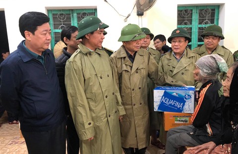 | Le vice-ministre de l’Agriculture et du Développement rural Nguyên Hoàng Hiêp (centre) rend visite aux habitants du district de Cam Lô, province de Quang Tri. |