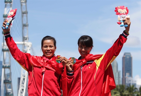 | Le duo Ta Thanh Huyên et Pham Thi Thao ont gagné l'or en deux de couple poids légers femmes (500m). Photo : Quôc Khanh/VNA/CVN |