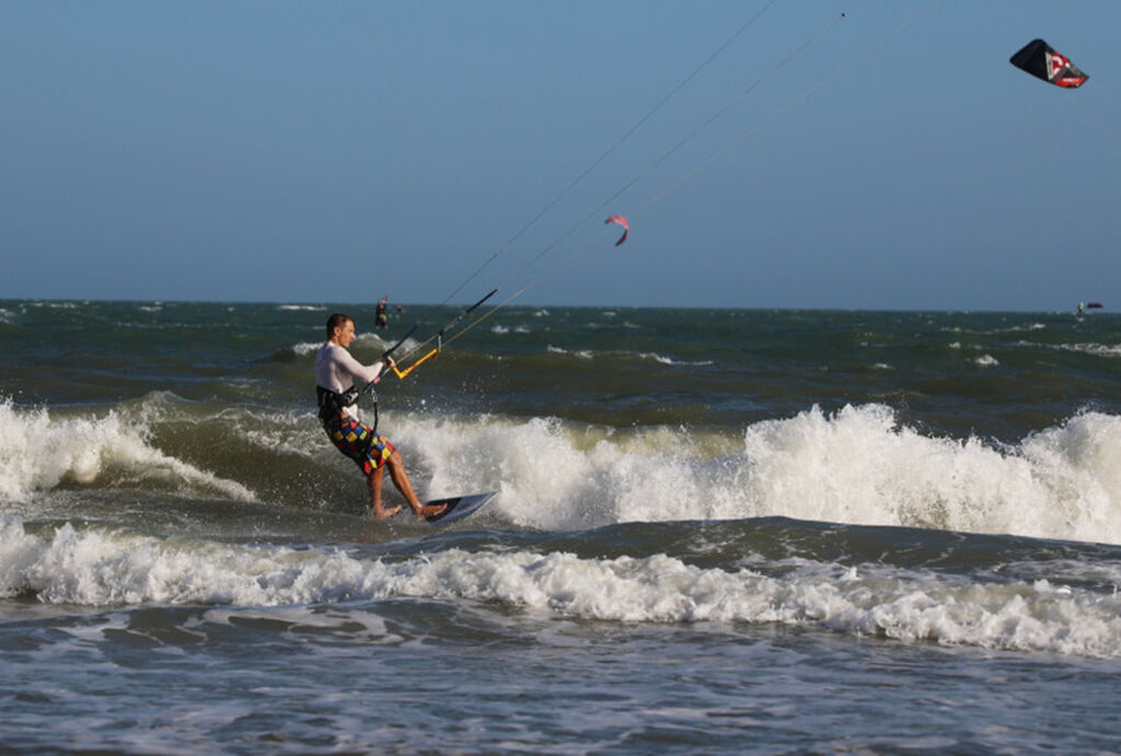 | Des touristes internationaux font du kitesurf sur la plage de Mui Ne. |